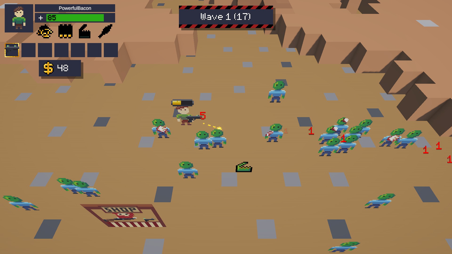 Zombie Quarry I is a prototype for a wave-survival shooter where the player has to mine for resources to upgrade and survive.